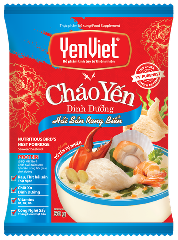 - Gói dinh dưỡng: Rong biển sấy thăng hoa (0.5 g/50 g), nấm tuyết sấy thăng hoa, tổ yến sấy thăng hoa (50 mg/50 g).